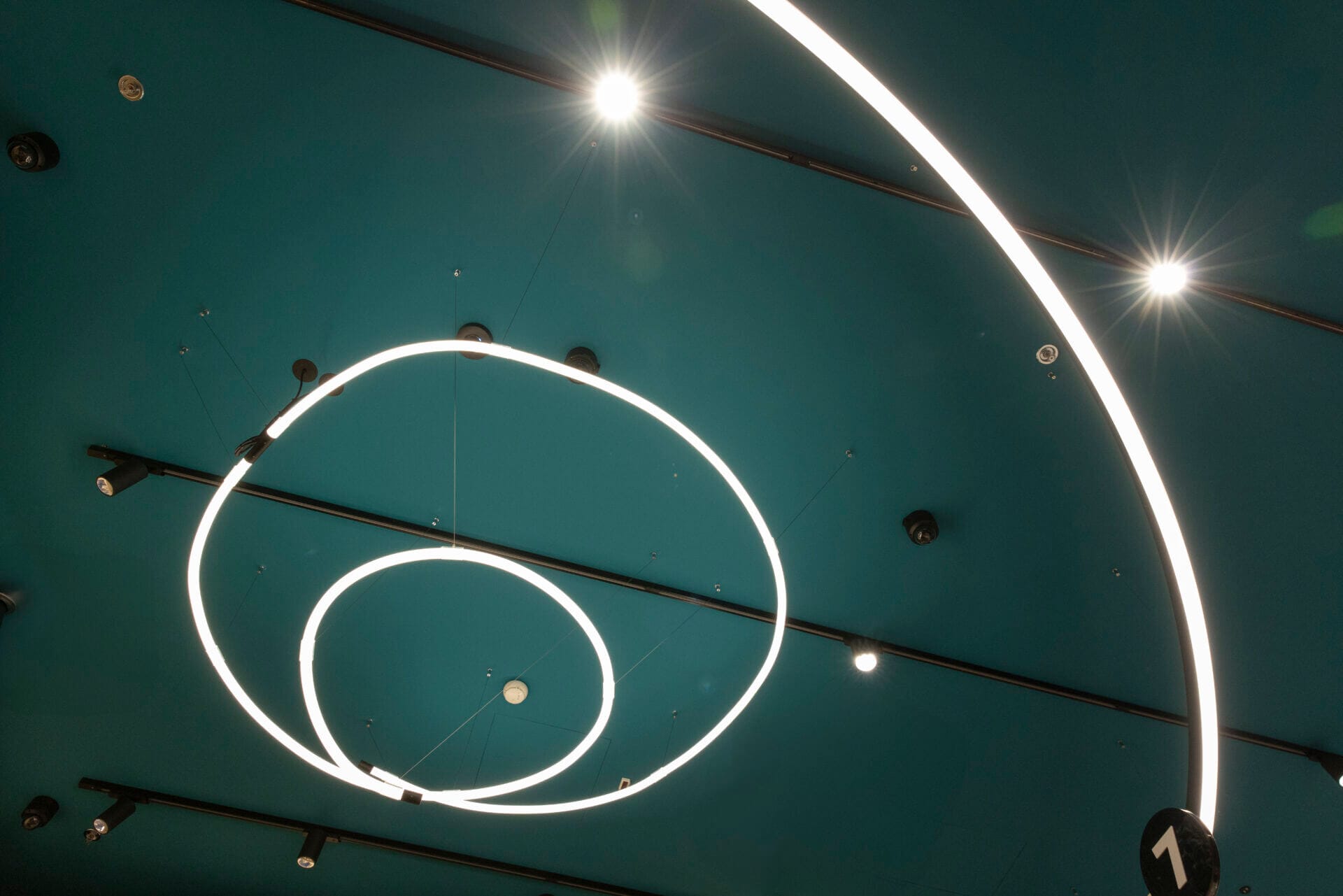 With a teal ceiling and strong shapes, the space needed lighting that stands out, yet supports the customer experience. Light4U track luminaires do just that. They highlight products, guide visitors, and make the store feel open and well organised.